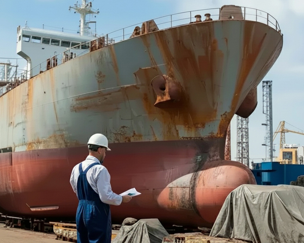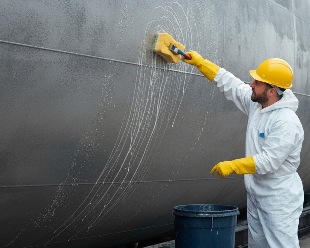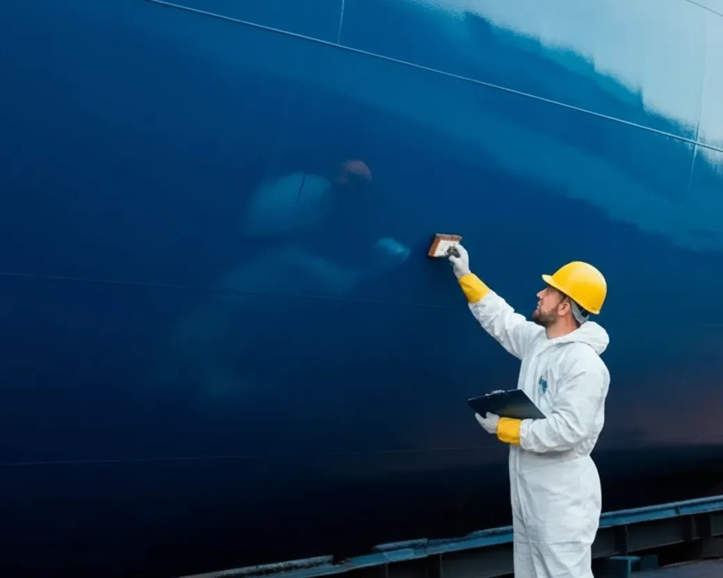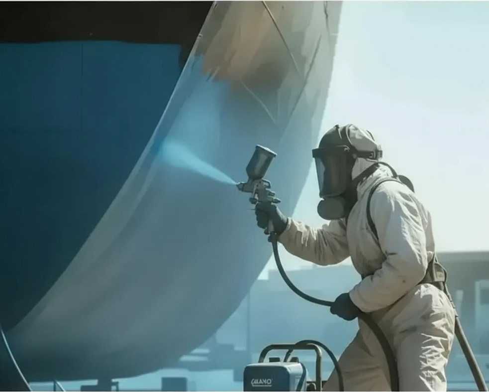 4. Безвоздушное нанесение защитного покрытия (прочное импортное покрытие в качестве базового, применяемое для нижней части морских судов)